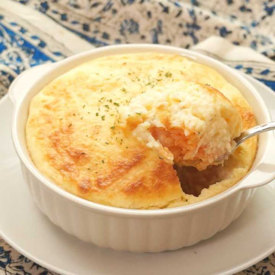 ふわふわチーズスフレがとろーりお口でとろける♪ 混ぜるだけのケチャップライスとの相性も抜群! おうちにある材料ですぐ出来ます!