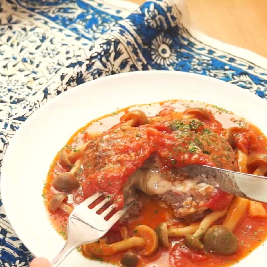 お店で食べていたチーズハンバーグが自宅で簡単に作れます! トマトソースも簡単に作れて、風味がより一層食欲をそそりますよ! ハンバーグを煮込むことによって、焦げにくく中身がよりジューシーになります!