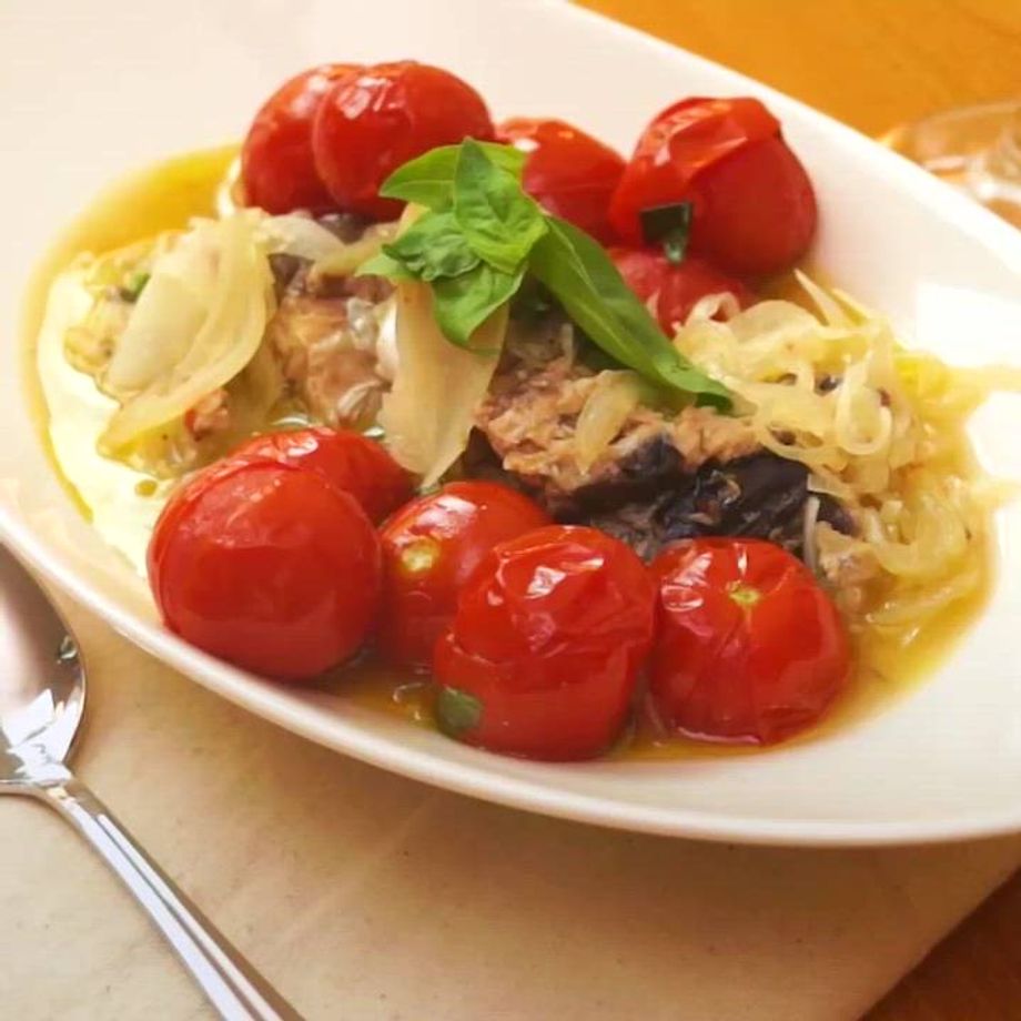 鯖缶だけでは物足りない...そんな時に簡単にできる鯖缶アクアパッツァをご紹介します! トマトとバジルで見た目も華やかに♪ 今晩のおつまみにいかがですか?