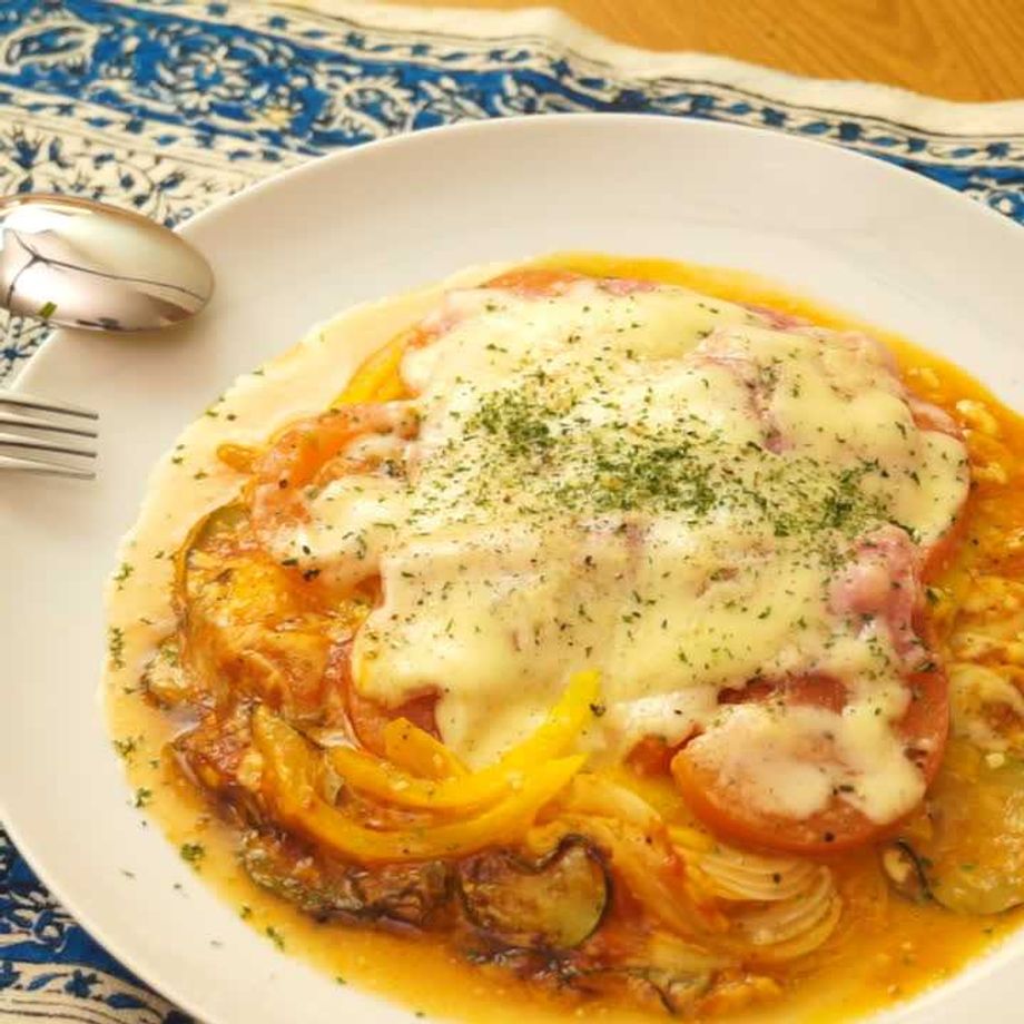 - スライスチーズが無かったので、ピザ用チーズで代用、ベーコンも足りなかったのでソーセージを切って加えました。 野菜からの水分も相まって、さっぱりと戴けます。旬野菜を使った夏にピッタリのレシピですし、食欲のない時にも良いと思います。 約1.5倍の量で作りましたが、子どもたちにも好評だったので、次回は沢山作りたいと思います。味の濃さは塩やトマトケチャップの量で加減できると思います。 『ズッキーニとツナのサラダ』と共に戴きました。こちらも美味しかったです。 大きなズッキーニを頂きどうしようかと思っていたので助かりました。