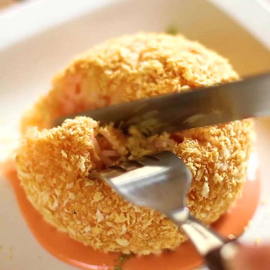 お弁当にも使えるレシピ! ライスコロッケは、外はサクサク!中はトロ〜リ♡ 揚げる必要もなくヘルシーに召し上がれます。