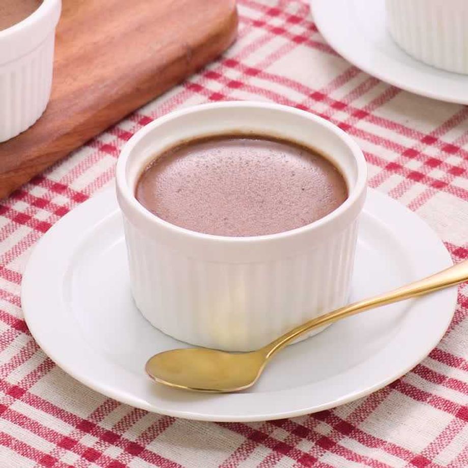 - 確かに濃厚!ぷるんとしたプリンではなく、ねっとりした食感で満足感があります^_^ 夕食後に食べたいと子供から要望があり、バタバタ作りましたが、割と簡単に蒸す工程までいけました。 使ってるフライパンが熱伝導が良いものなので、15分弱火で10分蒸らしました。 チョコレートはブラックチョコを使うと大人っぽい味なので、今度はミルクチョコを使ってみようと思います。お酒を入れるなら、ブラックの方が合いそう! 食べ応えがあるので、小さめのカップに数個に分けて作った方が、もたれずにちょうど良さそうと思いました。