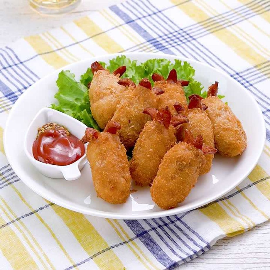 見た目はエビフライ!実はソーセージのアレンジレシピなんです。 ソーセージの肉巻きフライでお子様を驚かせてみませんか? お弁当はもちろん、晩ごはんのおかずにもおすすめです!※よりおいしく作れるように工程を見直しました。2020年8月