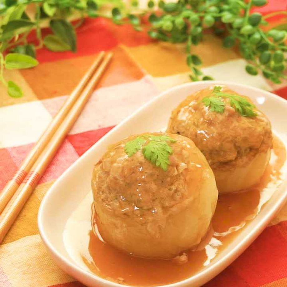 - 新玉ねぎをたくさんに頂いたので作ってみました。 くり抜いた玉ねぎも使えるので、無駄がなくって良かったです。炊飯器ではなく、圧力鍋でやりました。20分でやってみましたが、時間が長かったのか3玉入れて1玉だけ崩れないで出来ました。食べれば崩れるので、崩れていても大丈夫でした。とろみをつけませんでしたが、味はしっかりついていました。玉ねぎも甘くって美味しかったです。