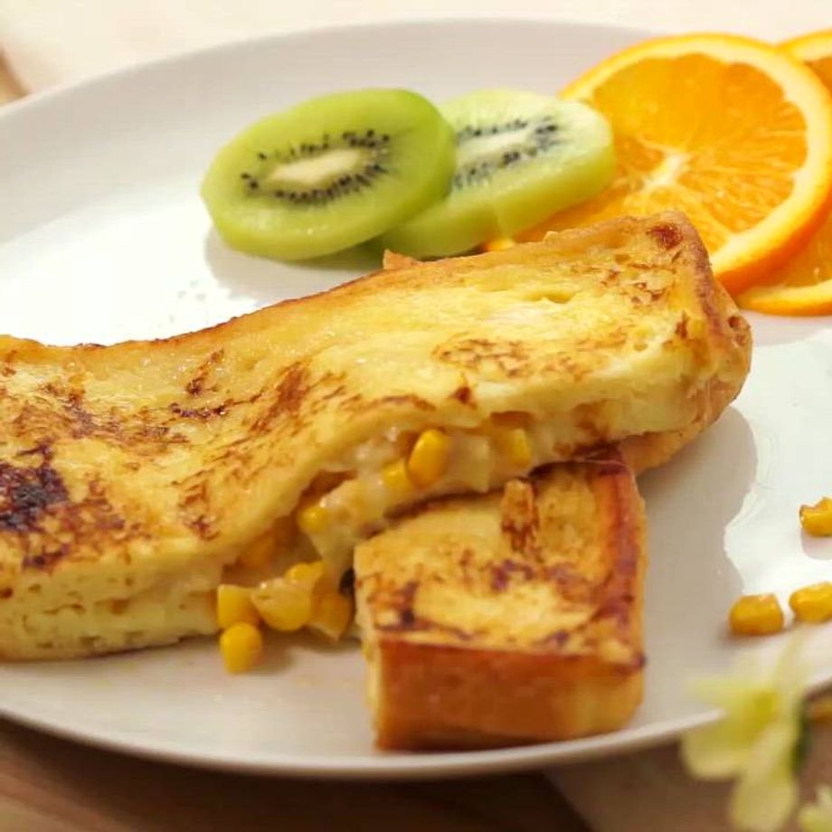 簡単おいしい朝ごはんにコーンチーズフレンチはいかがでしょうか? とろ〜りチーズが、ふわっと仕上がったフレンチトーストに絡みます。 スイートコーンのプチプチッとした食感もお楽しみください。