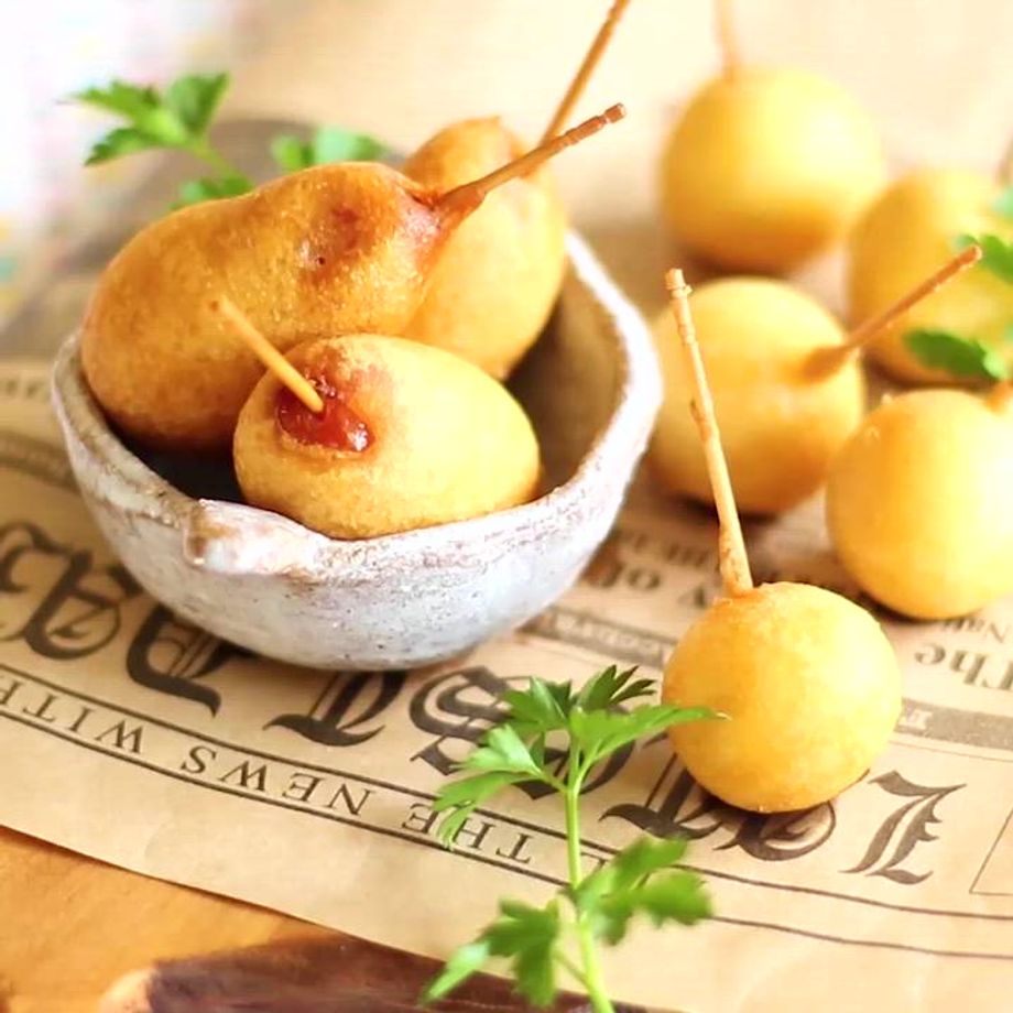 おやつに食べたいミニアメリカンドッグをご紹介♪ホットケーキミックスを使って簡単にできるので、材料が少なくできるのもうれしいポイント♪ アメリカンドッグだけでなくキャンディーチーズも揚げたり色んなアレンジが楽しめる♪ パーティーなど、友達とワイワイする時にオススメ!