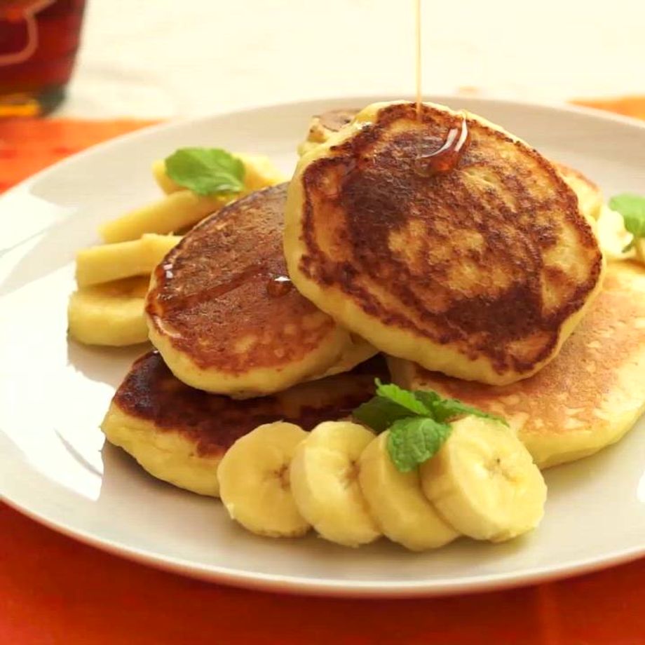 材料を全て混ぜて焼くだけ! オーブンいらずで簡単に作れるパンケーキを紹介します。 豆腐で作るからもちふわ食感がたまりません♡ メープルシロップやフルーツをのせて召し上がれ♪