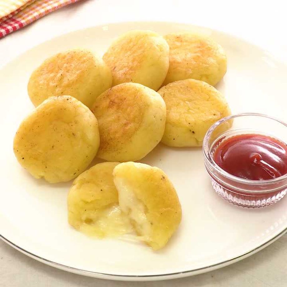 とても簡単に作れました〜! じゃがいも2個、片栗粉大3で作り、9等分したスライスチーズを1〜2枚包んでマヨネーズ大1で焼きました。マヨネーズは少し入れすぎました( .. ) ちゃんと火が通ってないとパサパサした感じになります。 ケチャップなしでも素朴な感じでおいしいです。もちろんケチャップありでもおいしいです!はる