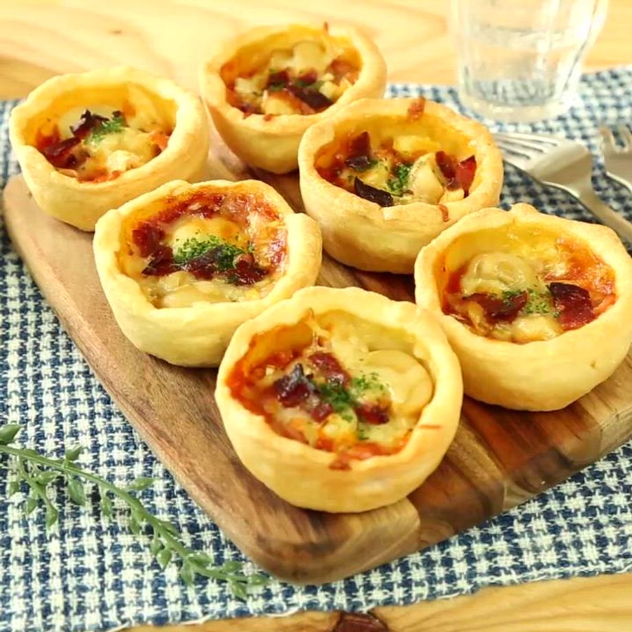 外はサクッと中はとろ〜りモッツァレラがとろけるミニピザパイはいかがですか? おやつにはもちろん、パーティーにも大活躍間違い無し♪ 冷蔵庫にあるものでのアレンジも簡単!