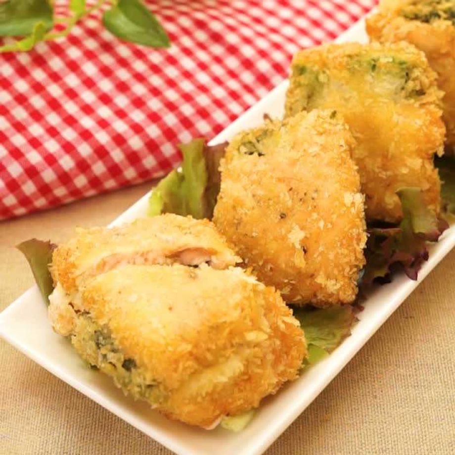サーモンの柔らかい身とサワークリームがしみたほうれん草! ふわふわの身の外側はサクサクに! サーモンとほうれん草のサンドフライはお弁当にもぴったりなレシピです♪