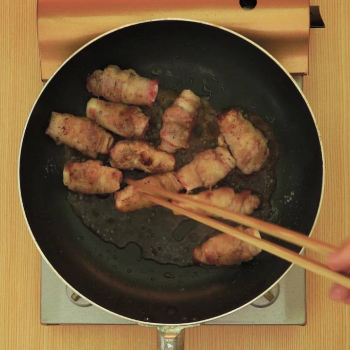 サラダ油を熱したフライパンに並べ、転がしながら全体に焼き色をつける