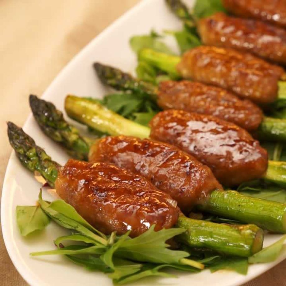 定番の甘辛つくねとジューシーなアスパラの組み合わせ。 お弁当のおかずにして、いつものつくねに彩りプラス! アスパラのシャキシャキした歯ごたえもたまりません!