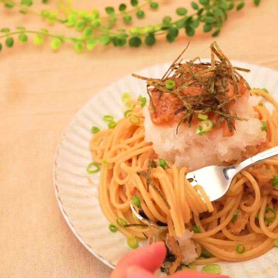 いつものパスタに飽きたあなたへ。 和えるだけでさっぱり和風に変身、なめ茸おろしのパスタを紹介します♪ わさび好きな方はもっと入れても美味しいです!