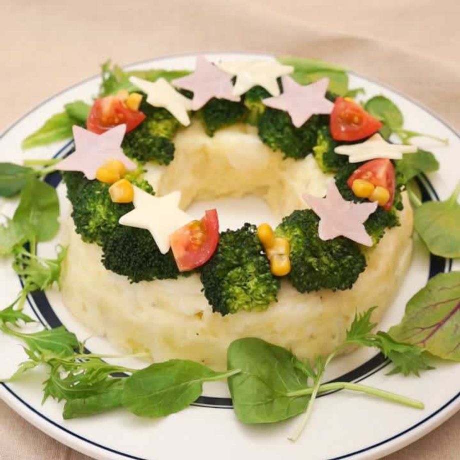 クリスマスの欠かせない可愛いサラダレシピ! リースの形で小さいお子様がいるご家庭にもおすすめです♪ ポテサラリースで楽しい時間を過ごしましょう!