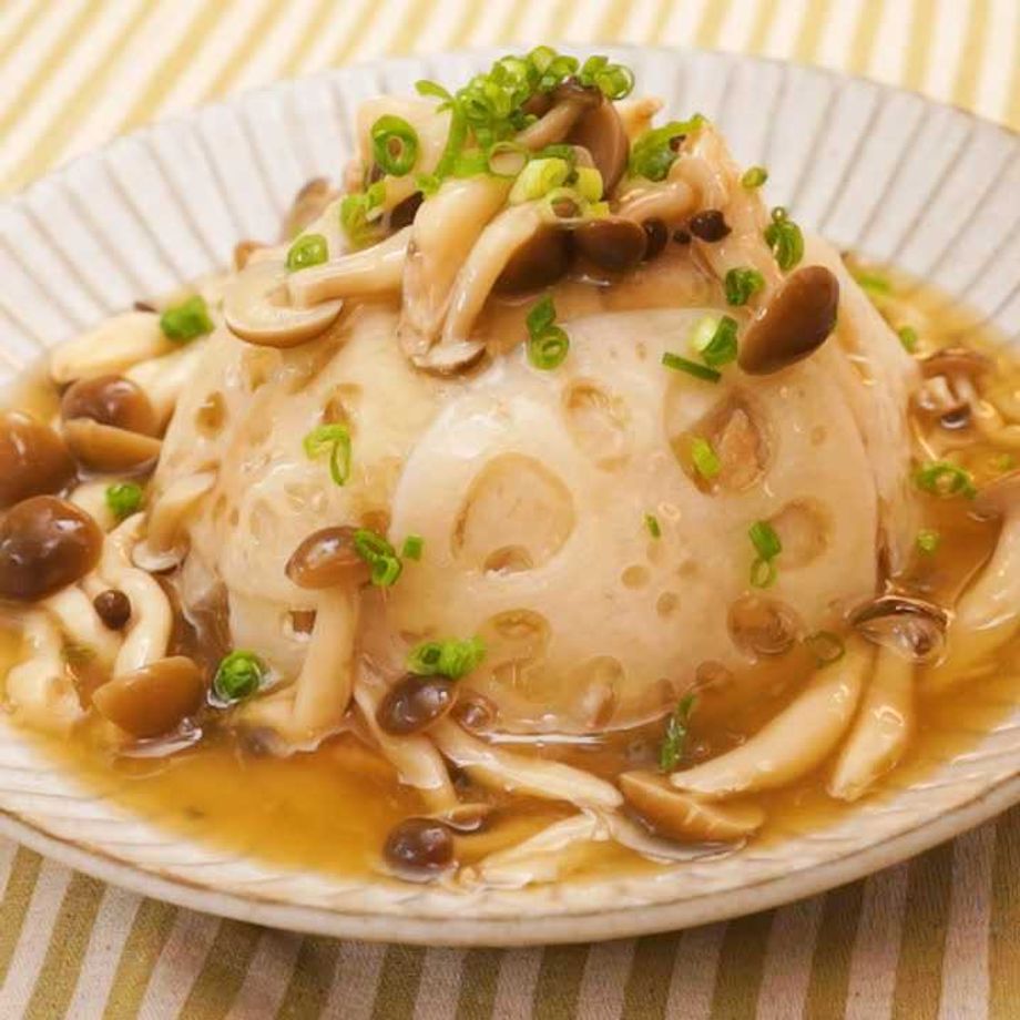 れんこんとお肉の食感の違いが美味しい♪ 鶏ミンチでボリューム満点の一品です! 寒い冬には温かいあんかけで体を温めてくださいね!
