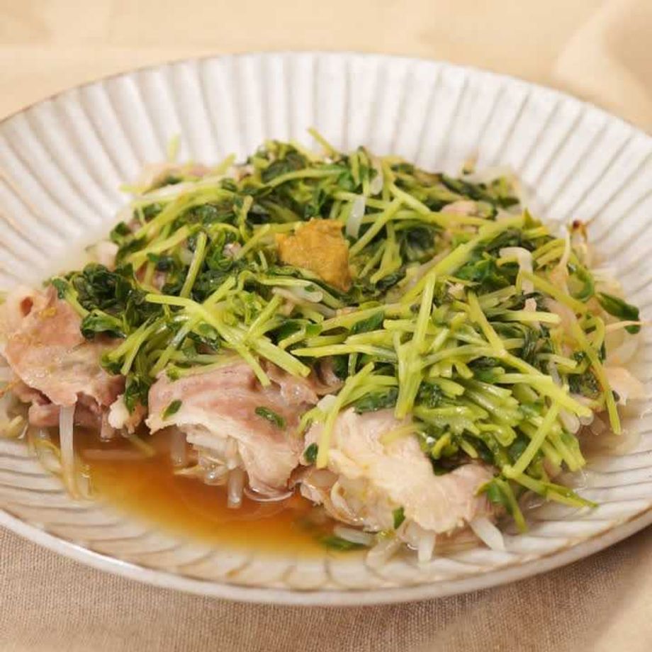 疲れている日は洗い物も少ないレンチン料理! 豆苗×もやしで家計に優しいメインのおかずです♪ ヘルシーだけど豚肉で満足度もUP☆