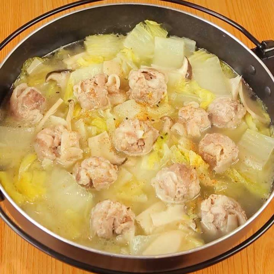 温かお鍋で体も心もポカポカに♪ お手軽な材料だけど豚こま団子で食べごたえもバッチリ! バターでコクのある味わいになっています。