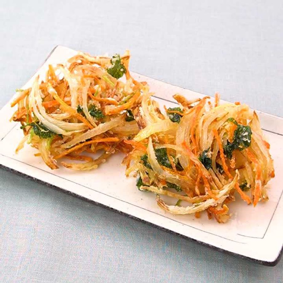 天丼やお蕎麦の具、おつまみにも最適、野菜のかきあげをご紹介♪ 玉ねぎ、にんじん、みつばの食感の違いが楽しめます♪かき揚げは少量ずつ揚げてサクッと仕上げましょう!サクサクな食感にやみつきになること間違いなし!難しいイメージのかき揚げですが、自宅でも簡単に作れますよ♪