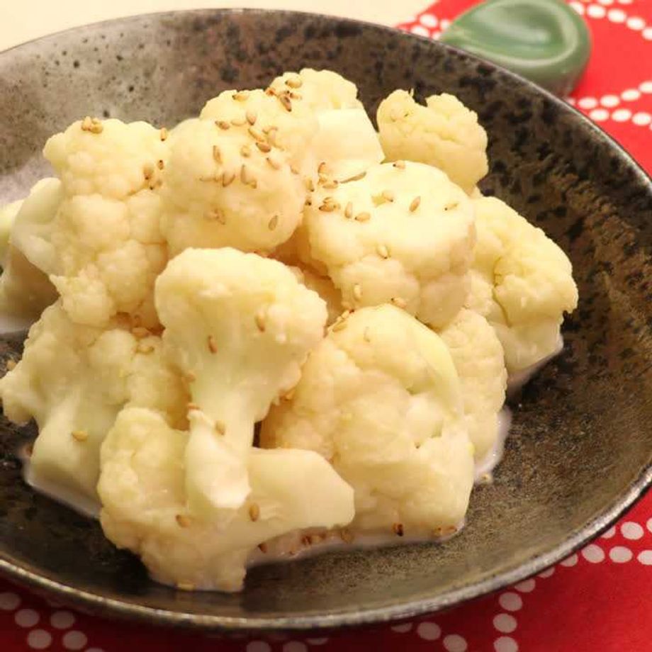 カリフラワーのビタミンは茹でてもブロッコリーよりも損失が少ないって知ってましたか? 風邪予防&美肌に手軽にできるごま味噌あえはいかがでしょうか♪