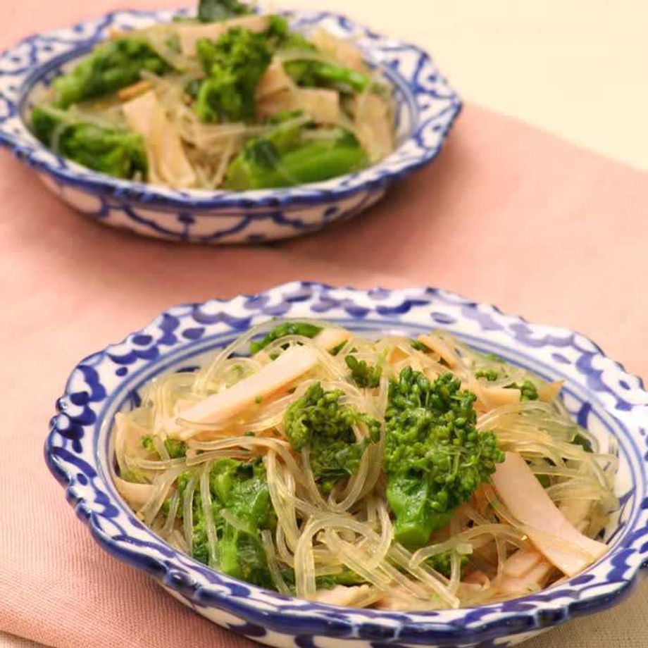 春気分たっぷりの菜の花を、さっぱり春雨サラダで♪ ホロ苦の菜の花の苦味が決め手。 春色で食卓を彩るサラダです。