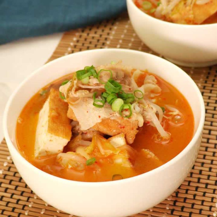 A汁系のレシピはお早めに召し上がっていただいた方が良いです。一人分の分量を記載させていただきますので、よろしければ試してみて下さい♪ ・豚バラ肉 50~g ・キムチ 30g ・厚揚げ 小さいサイズのもの1/2枚 ・もやし ひとつかみ ・ごま油 小さじ1 ・水 200cc ・鶏がらスープの素 小さじ1 ・おろしにんにく 少々 ・おろししょうが 少々 ・塩こしょう 少々 ・粉チーズ 小さじ1〜2 ・ごま油 お好みで