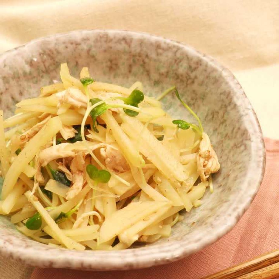 余りがちなじゃがいもをサラダでいただきましょう!じゃがいものシャキシャキ食感としっとりとしたささみがおいしいサラダです。さっぱり味で箸休めにもおすすめです。