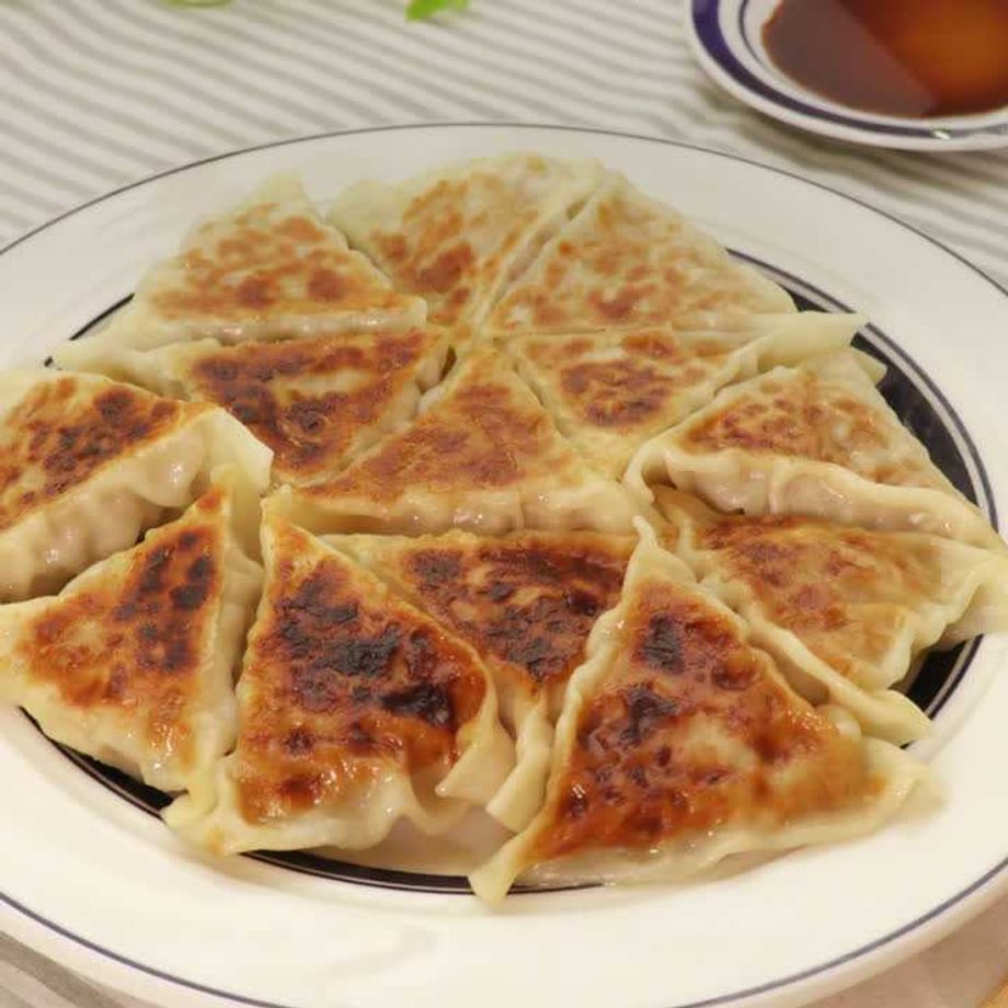 レンコンと豚ひき肉が10gほど多かった以外、レシピに忠実に作れました。 動画でお豆腐はそのまま投入しているように見えましたが、念のため重石で水切りして使いました。すりおろしたレンコンや生姜の水分も極力入れずタネを作りました。そのせいか、大判の餃子の皮23枚におさまりました。 料理初心者レベルですが、この包み方なら簡単に出来ました。ちゃんと皮の周りにお水を付けて剥がれないようにしました。焼いている間、てっぺんの隙間から肉汁がプクプクしているのが見えて美味しそうでした。 普段味付冷凍餃子ばかり食べているので、食べた時に味が薄くてビックリしました。なのでお塩をかけたりポン酢をかけてみました。他の味も挑戦してみないと何とも。ピザ用チーズを入れても良かったかも。 刻んだレンコンの歯ごたえは好きだと思っていたのですが、全部すりおろしたほうが好きだったかも。でもそれはそれで別の材料の分量が変わっちゃうのかな? 市販の冷凍餃子は1袋ペロッと食べられますが、これはボリュームがあります。4個でお腹いっぱい。レンコンを噛むせいかな? また色々アレンジしてみたいと思います。