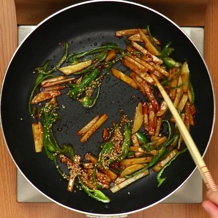 じゃがいもとピーマンのピリ辛炒め
