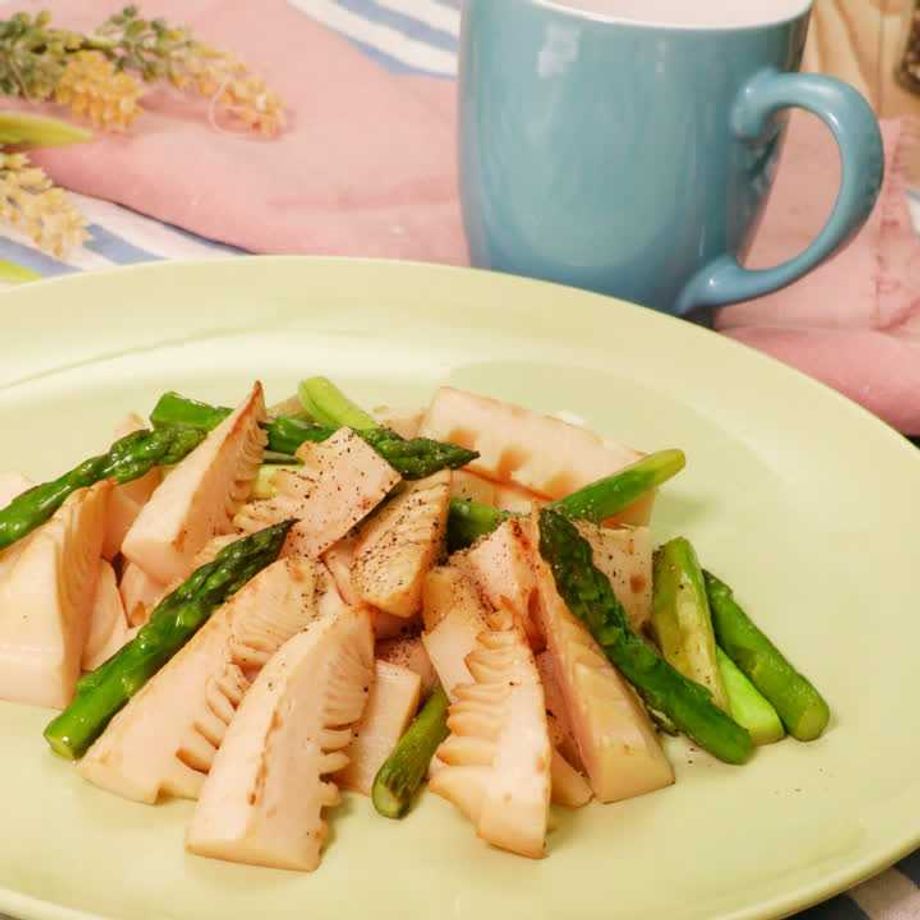 あいテレビ「金曜ほのボーノ!」で紹介されました! 春の魅力がたっぷりつまった、たけのことアスパラの炒めもの♪ コンソメとバターの香りが、たけのこの香りをますますおいしく引き立てます! しゃくしゃくした食感がたまりません♪