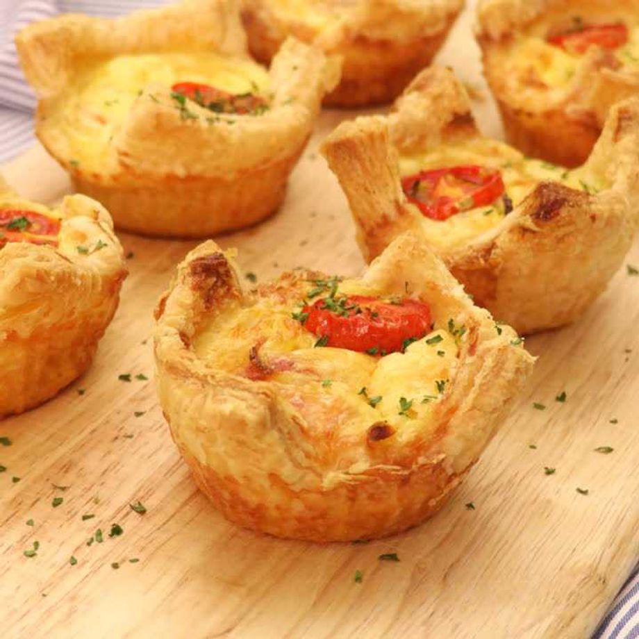 マフィン型でかわいいひとくちキッシュを作りませんか? 具材も炒めず小さいのでそのまま食べられて嬉しい! おしゃれなデリ風キッシュは持ち寄りのパーティーにもオススメです♪