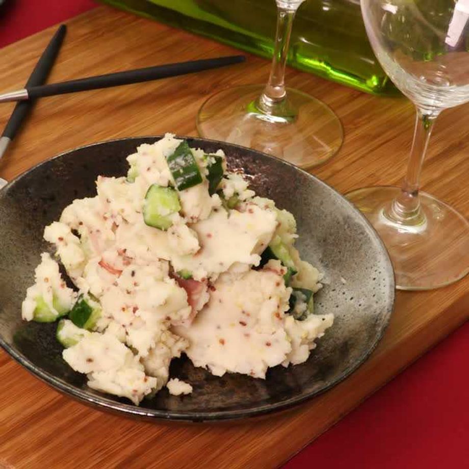 アンチョビとカリカリベーコンが決めて!ワインに合う大人っぽいポテトサラダはいかがですか?特別な日のディナーにおすすめです♪