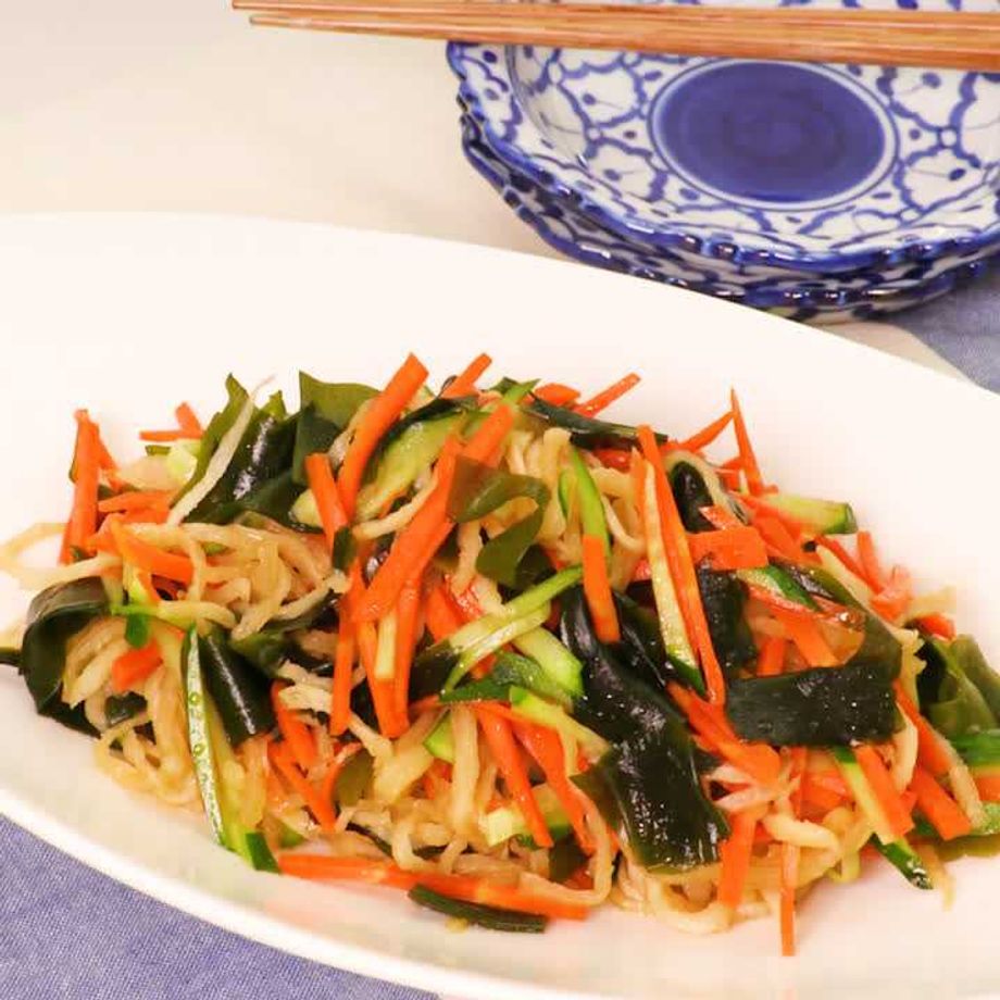千切り大根の代わりに、もやしをレンチン わかめの代わりに、きくらげに変更しました。 水っぽくならないように、きゅうりは塩もみ、もやしも水分をしっかり切りました。 美味しかったです☆かおちゃん