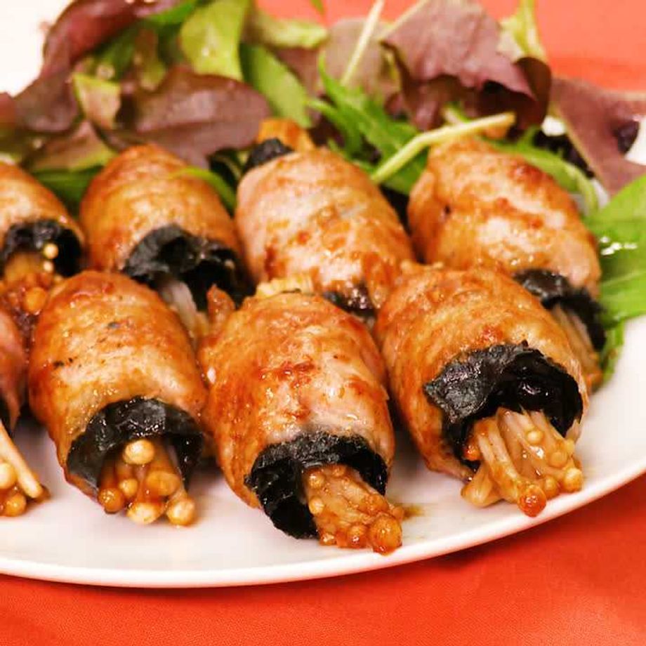お弁当にもオススメ!豚バラえのきのり巻きの作り方! のりの風味が良いアクセントに◎ 食感も楽しみながら味わってください!