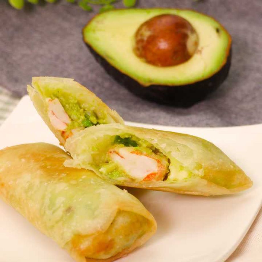 プリップリのエビをチーズで挟んだ春巻きのレシピ! 外はサクサクの皮、中はトロトロのアボカドがたまりません! 混ぜて巻くだけで簡単に作れちゃいます♪