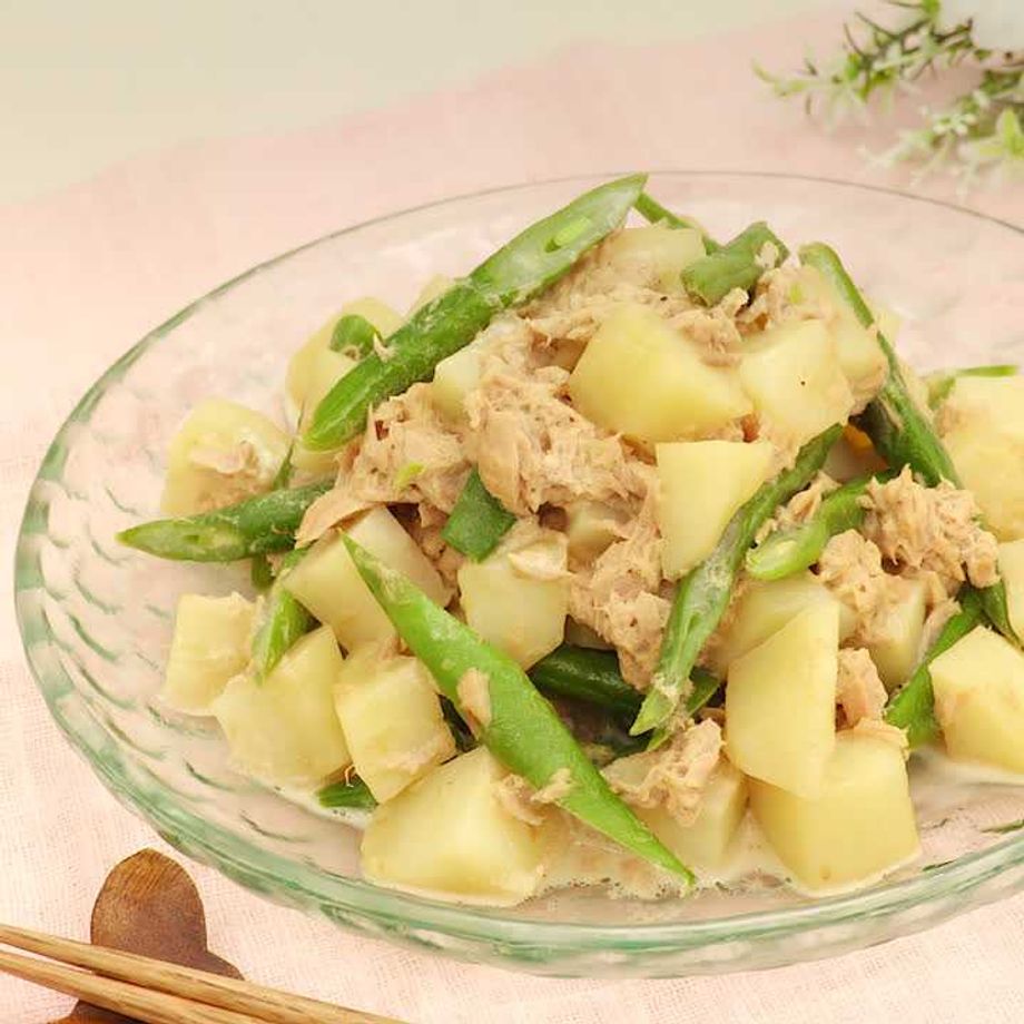 ホクホクシャキシャキの簡単サラダ♪ ツナ缶の油をしっかり切って加えるのがポイント! レモン汁も加えてサッパリ仕上げました。
