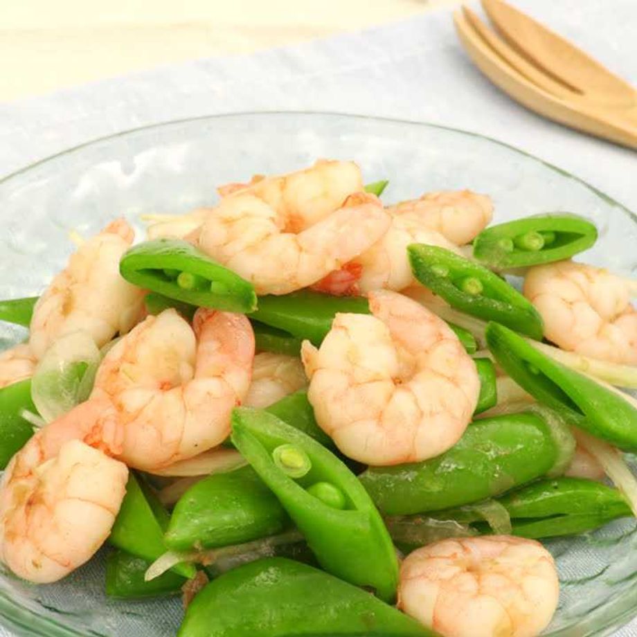 鍋に湯をわかし、スナップエンドウを入れて30秒ほどゆで、冷水にとって水気を切る。同じ鍋にえびを入れて2分ほどゆで、取り出して冷ます。
