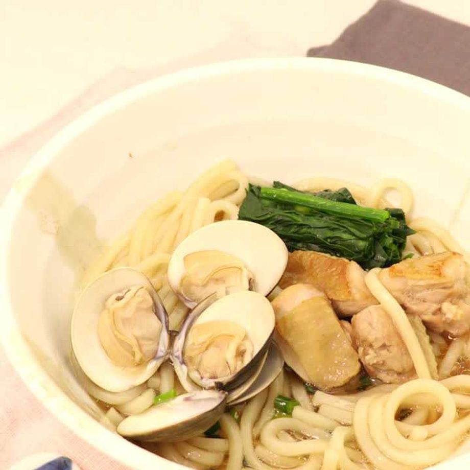 はまぐりと鶏肉のだしが絶妙です。 心も体も温まりますよ♪ 冷凍うどんはストックしておくと小腹がすいたとき便利です。