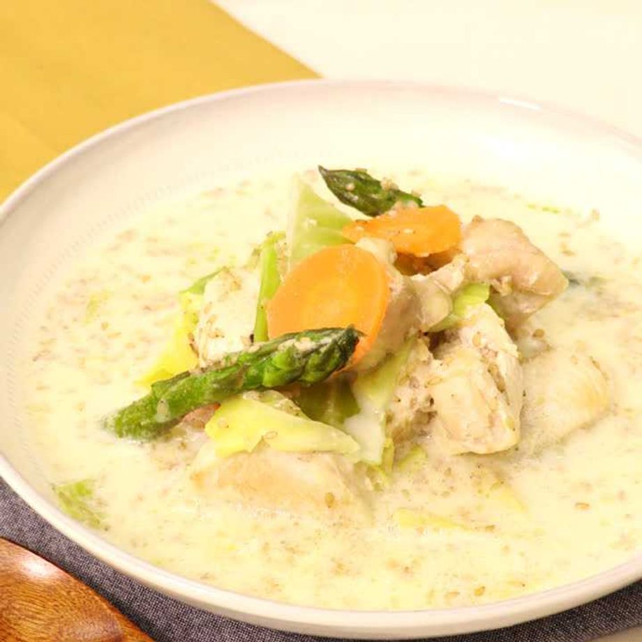 - 豆乳がなく、牛乳で作ってしまいました!(^ ^;) でもとても美味しかったです。 レビューのアドバイスにある、ご飯とチーズを入れてリゾット風にしたらとっても美味しくて、また作りたいと思いました。