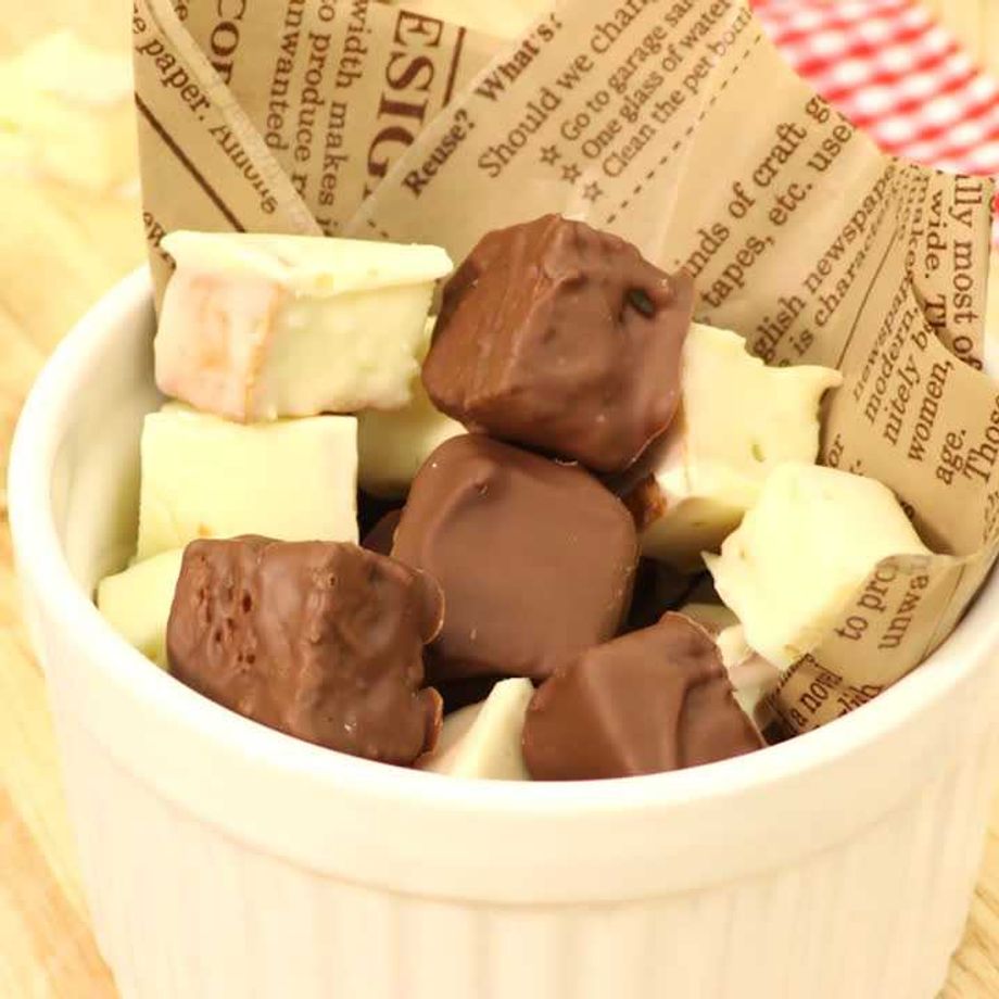 溶かした2種のチョコレートに3をくぐらせ、クッキングシートの上にのせ20〜30分冷蔵庫で冷やす。