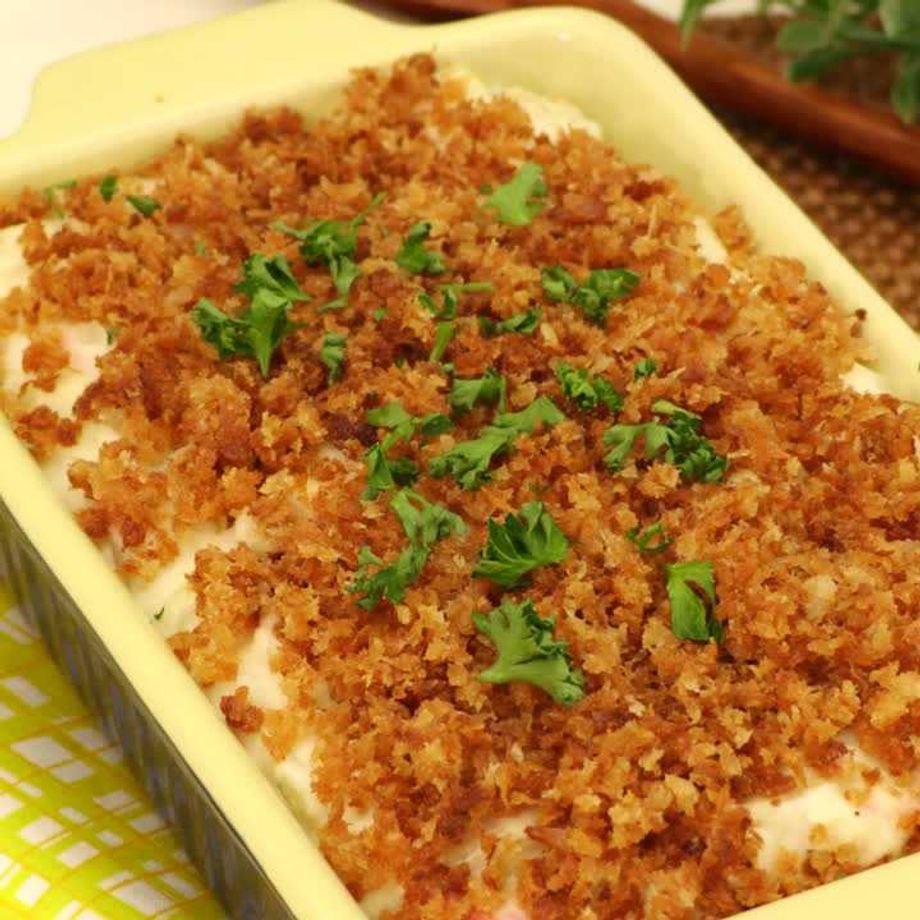 色づいたらのクリームソースの上にまんべんなく乗せる。お好みでパセリをちらして完成。