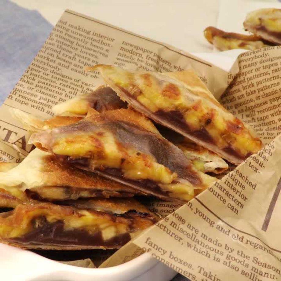 和と洋のコラボがたまらない!あんこバナナ春巻きの紹介です♪ 冷蔵庫に余ったまま残りがちな春巻きの皮を有効活用!