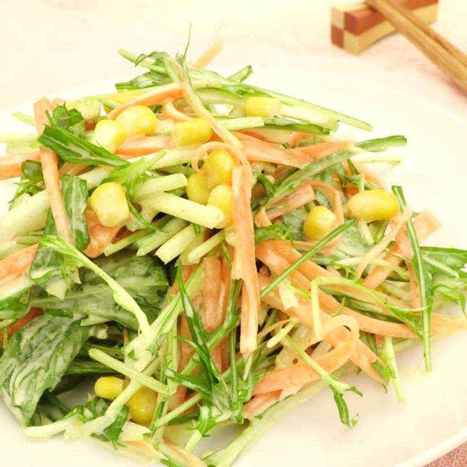 にんじんは千切り、水菜はざく切りにする