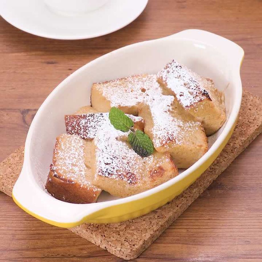残った食パンがデザートに変身! もちもち食感でボリュームもあり腹持ちもバッチリです。 腹ペコおやつタイムにいかがですか?