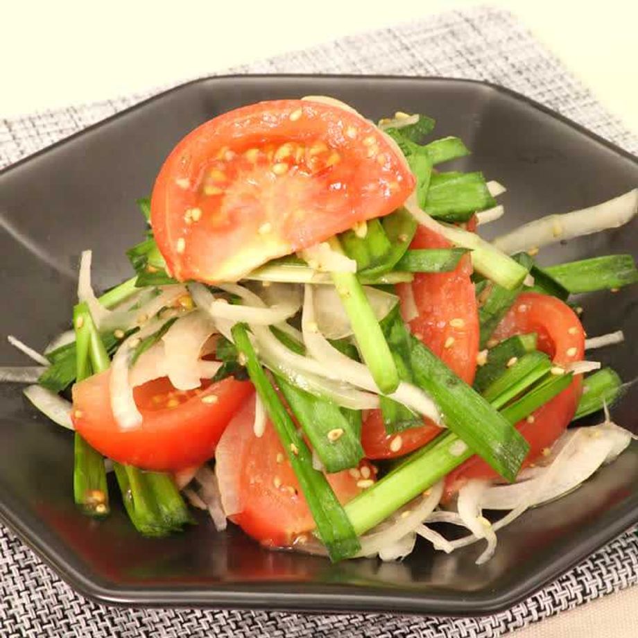 さっぱりヘルシー♪トマトのナムル! ニラとニンニクの香りが食欲をそそります! 簡単にできるので、もう一品欲しい時にぴったり♪