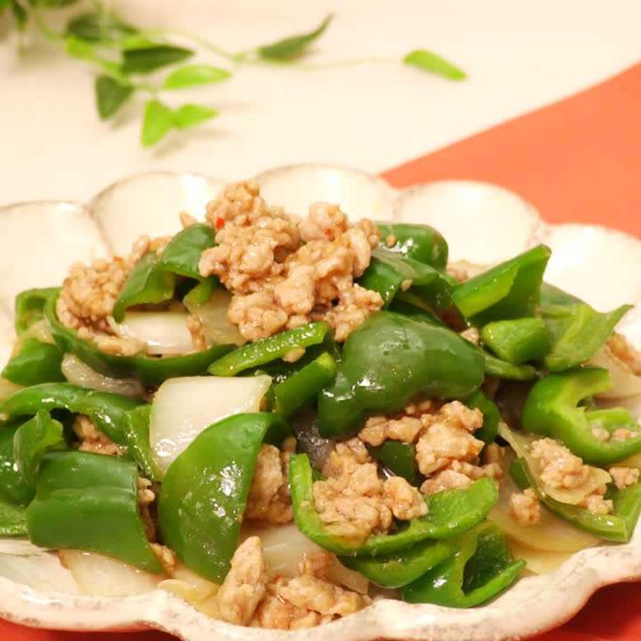玉ねぎとピーマンのシャキシャキ食感! ピリ辛な鶏ひき肉があっさり美味しい♪ ポン酢で味付けしているのでさっぱりと召し上がれます!