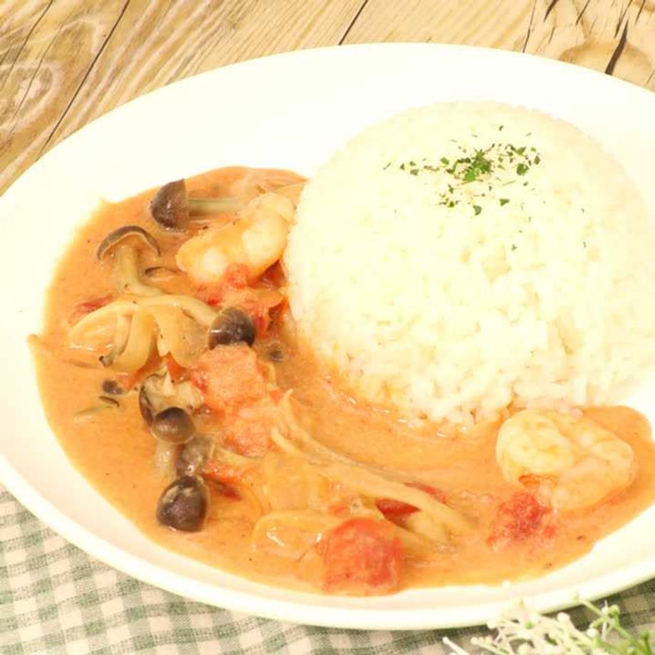 簡単工程で作れちゃう! コク旨トマトクリームソースと海老が絶妙に絡み合った一品! ライスのお代わりいかかでしょうか♪