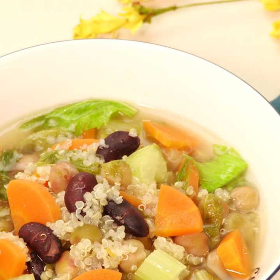栄養価の高いキヌアを使ったセロリとキヌアのエスニックスープです! 具だくさんなので、一品でボリューム抜群ですよ! スーパーフードで話題のキヌアを美味しく食卓に取り入れてみませんか?