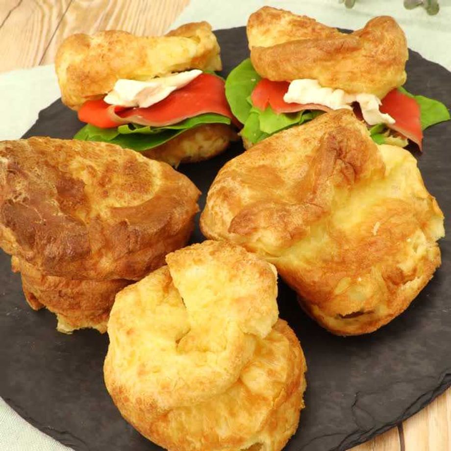 ポップオーバーとは、シュークリーム生地のような軽い食感が人気の新感覚パン♪発酵させないので気軽に作れます。そのまま食べても、中を開いて具材を挟んでも美味しいですよ♪ スモークサーモンやチーズ、ジャムなど色々と楽しめます。朝食に、おやつに、お好きな食べ方でお試しください。