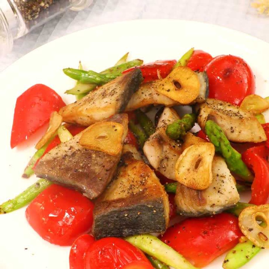 同じフライパンにブリを入れ、中火で焼き色がつくまで焼き、裏返して同様に焼き、黒こしょうをふる。
