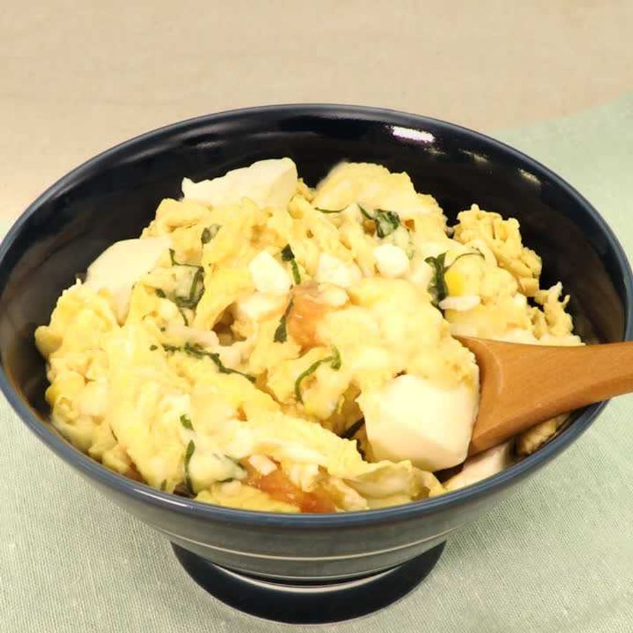 豆腐と卵で簡単節約! あつあつチーズがとろけます♪ チーズの和風アレンジごはんです!